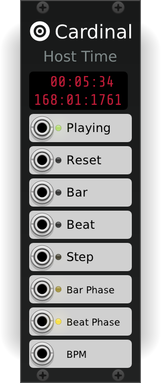 Unlike Rack, Cardinal does not use PPQN (pulses per quarter note) values, but BBT (bar-beat-tick) instead.