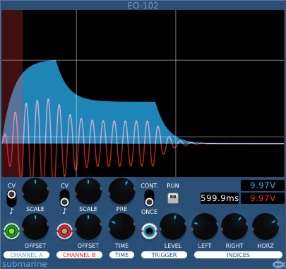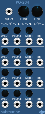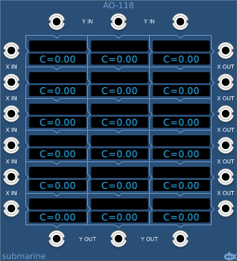 | In the example above we have an AO-106 6-algorithm device functioning as a voltage controlled sine wave oscillator. | |||